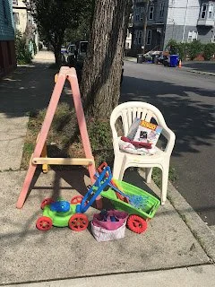 On a lovely summer day I emerged from the basement to the curb with this small collection of stuff: