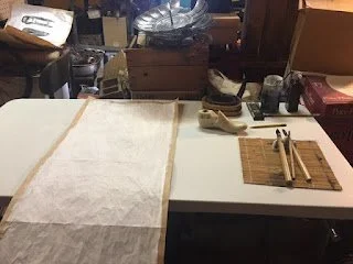 Preparing paper, smoothing, gessoing.